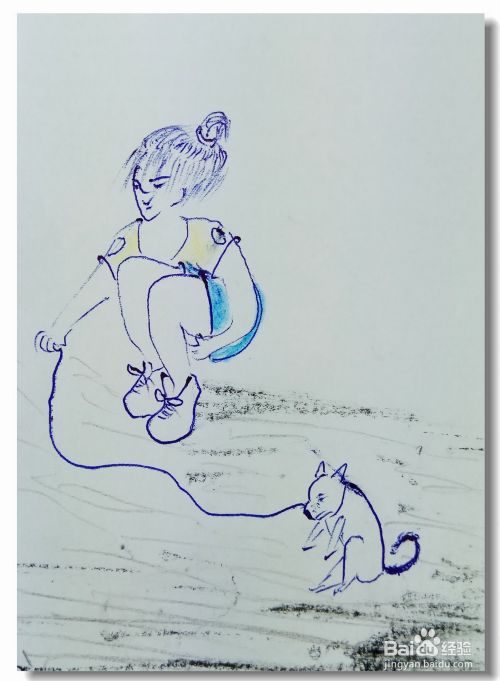 再用色彩画出女孩身上穿着的衣服颜色。
