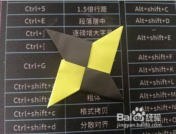 将其翻转后,上下向中间折叠固定,一个十字形的飞标就折叠好了。