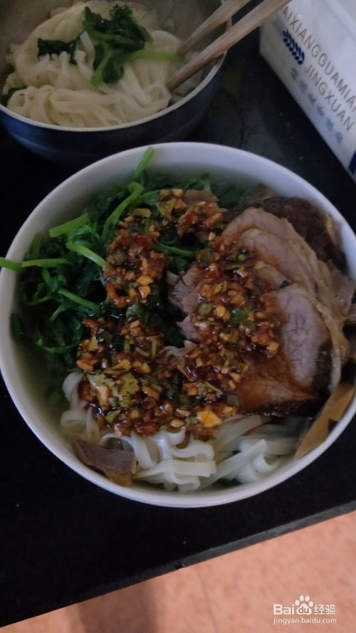 接着将面条挑入碗里,放入切好的牛肉片,再放入调好的酱料,一份美味的牛肉面就做好了