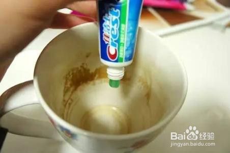 牙膏就可以使杯子焕然一新的,在刷杯子之前用开水烫一下杯子,然后拿出牙膏牙刷,将牙膏挤在牙刷上,然后牙刷在杯子底下回来晃动,不到一分钟牙刷就变的可脏,这就是被底下污垢