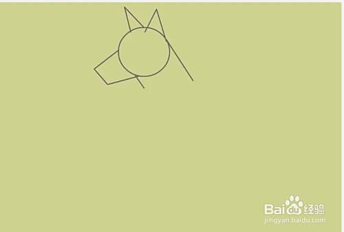 在头的左边画三条彼此连接的直线,作为猎狗的嘴巴。