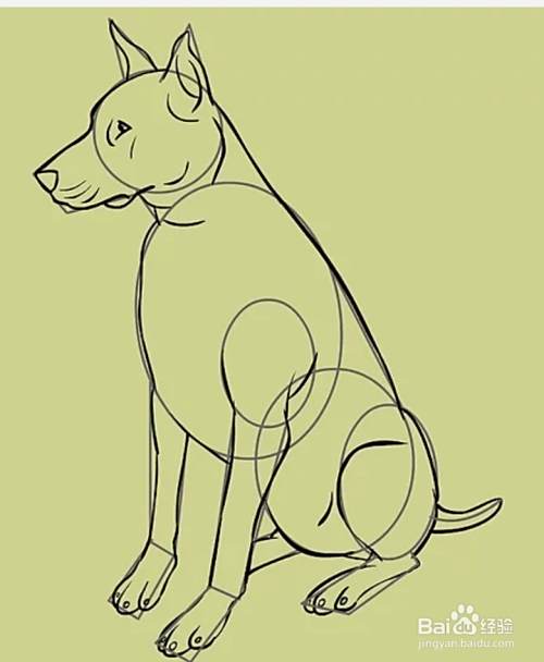 在尾部引出一条小曲线,作为猎狗的尾巴。