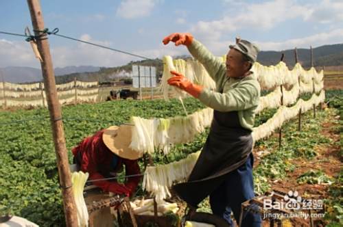 第三步:我们将切好的萝卜条一条一条的挂在晾衣架上或者放在长绳上,然后接下来就是把这个萝卜放在阳光下暴晒