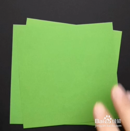 准备四张正方形彩纸,先拿一张纸沿中线对折。