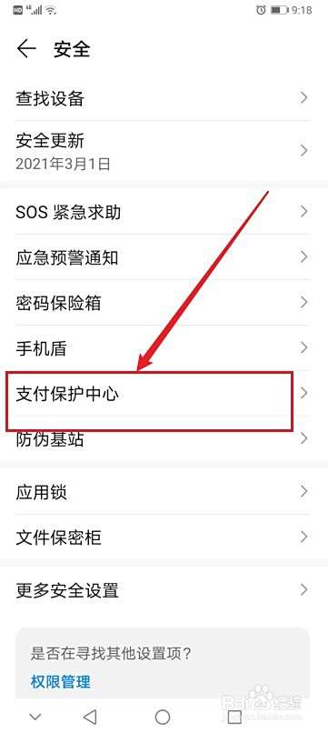 使用华为手机的用户,为了确保支付安全,应该将支付类的手机应用开启支付保护功能,操作方法如下。