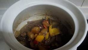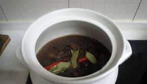 放入小红辣椒和香叶、草果、桂皮和少许花椒,文火炖一个小时。