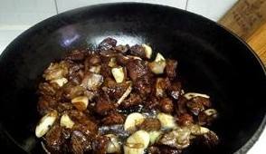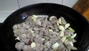 将焯好的牛肉放进去,大火煸炒5分钟。