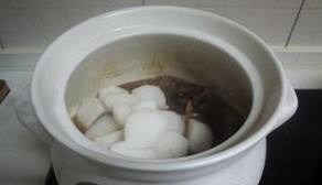 将萝卜倒入锅中再炖半个时辰,然后撒上盐和鸡精。