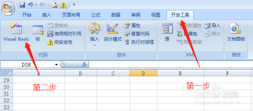 在工作表中,点击菜单栏【开发工具】,在其工具栏内,点击【visual basic】!