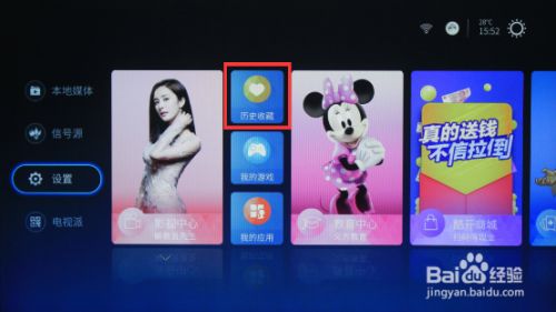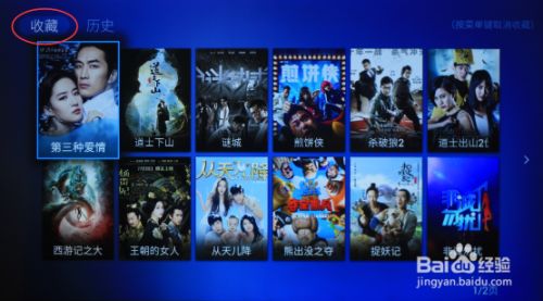 如果要删除这些视频怎么操作呢?选中需要删除的视频,遥控按“菜单”键,所选中视频出现“取消收藏”的提示。