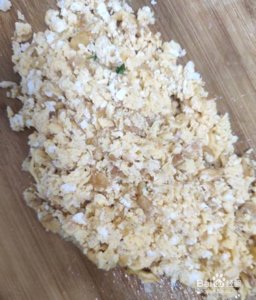 将两个鸡蛋打入碗中,用筷子搅拌后加入适量的盐,锅里放入适量的油,加入鸡蛋液一半,将鸡蛋摊好后起锅后,放入砧板上切成鸡蛋末,将鸡蛋液都制成鸡蛋末。
