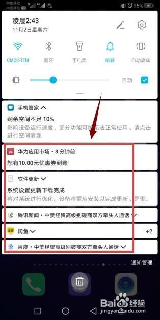 5.另外,用手指把手机屏幕从上往下滑动,然后再同第三步和第四步那样关掉后台应用即可。