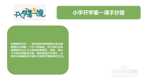 第三步,画个文本框,写上关于“小学开学第一课手抄报”相关的具体内容。