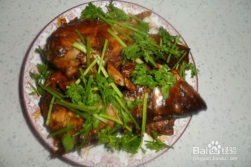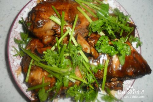 撒上香菜。一道喷香的海鱼就烹制好了。