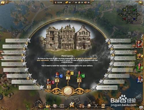 星数是你获胜的最快途径,威望等级、工人数量、军队数量、金币数量、占领据点数量、研究科技的数量等等都可以让你领先其他玩家。而图中一些上锁的科技则代表其唯一性,有龙头的星数建议大家不用太多关注,因为所需要的物资数量是非常惊人的,至少我从没靠这个来获取星数。其他上锁的科技如第一个建造修道院、获得科技星、占领星据点等等。所以在闷头发展的同时千万别忘了多关注下对手的星数情况,以免自己落后太多。而一旦达到地图所需的获胜星数,就将进入3分钟倒计时,时间一到你就成为最终的赢家。
