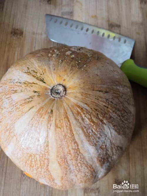 这时候就要用到菜刀了,平时用的刮皮刀,对于南瓜这么皮厚的,还真没办法。