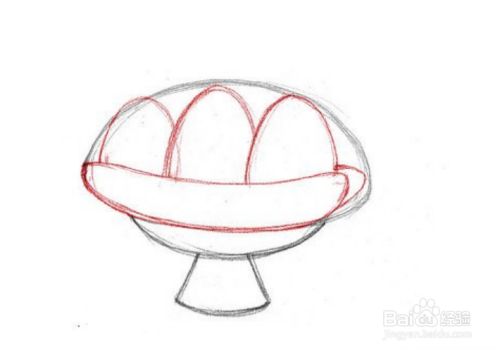 把素描画得很整齐。使碗的形状在小半圆和圆锥体上。仔细抹去素描中的残馀。