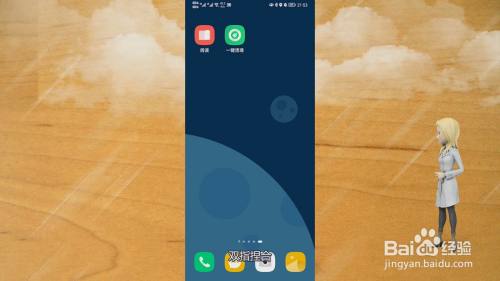 在华为手机的桌面中,双指捏合,进入桌面编辑界面。