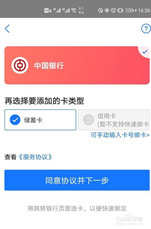 接下来选择选择一下【银行卡】类型,部分银行不支持信用卡绑定。