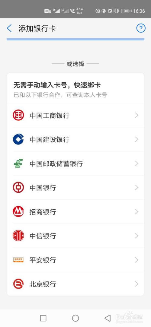 往下滑动页面,选择本次绑定银行卡所属的【银行】。