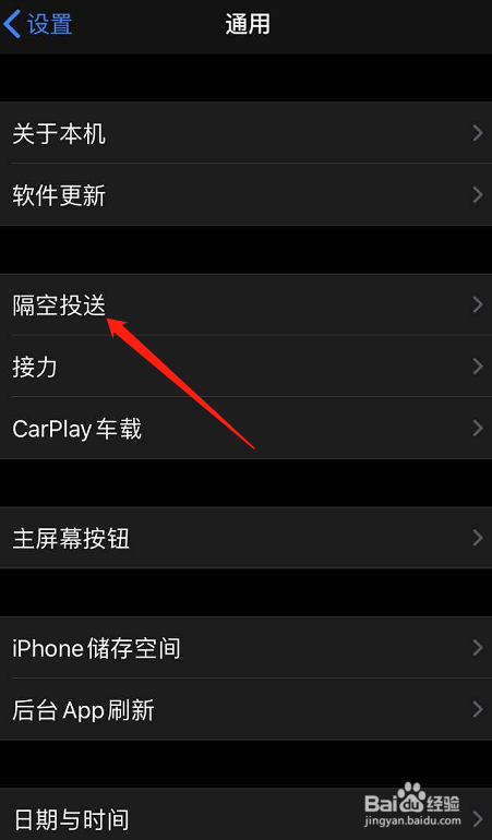 然后在通用页面内可以看见“隔空投送”的选项了,点击。