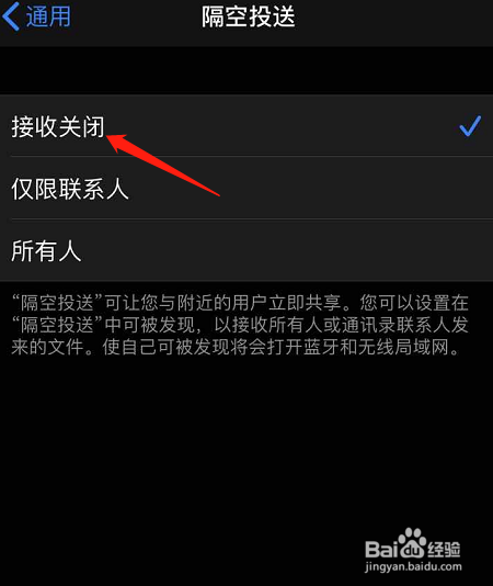 进入隔空投送设置页面之后,可以看见目前是接收全部人的投送。