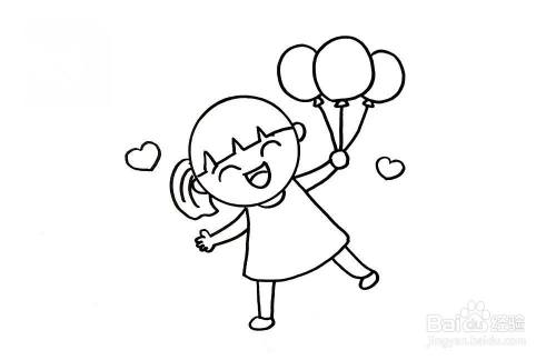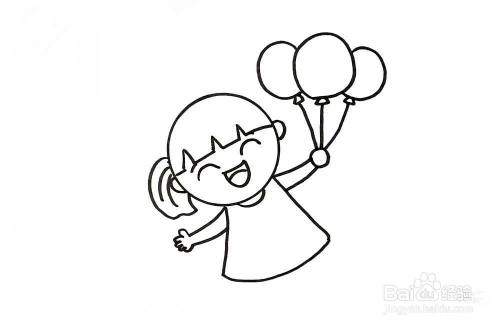 继续画出一只手是张开的,另一只手正拿着气球,注意气球之间的前后关系哦~