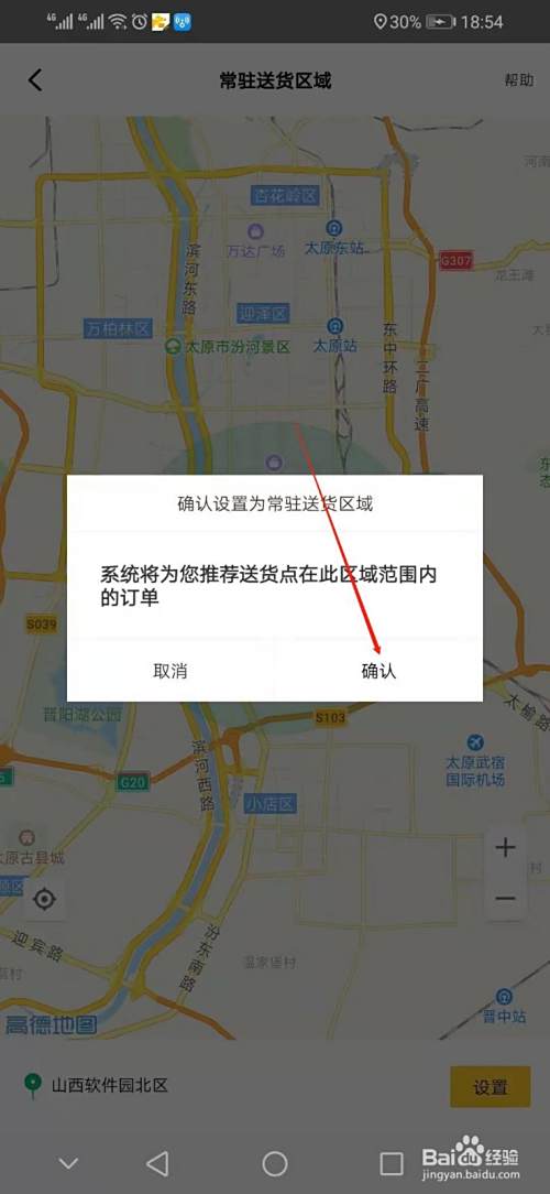 第五步:进入之后会看到有提示,“确定设置为常驻送货区域”,点击下方的确认。