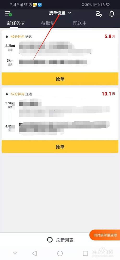 第一步:打开美团众包APP,在页面上方会看到一个“接单设置”点击进入