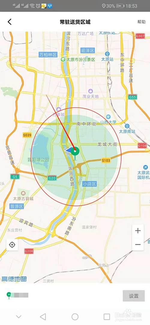 第三步:拖动图中的定位图标,移动到自己想要设定的区域,绿色区域代表系统只会派这个区域的订单。
