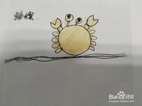 最后我们为了这幅简笔画更加形象,来为螃蟹脚下画上一片土地。