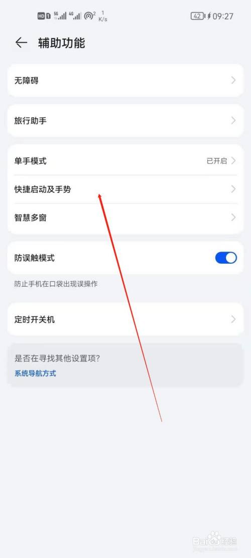2、进入辅助功能后,点击进入快捷启动及手势