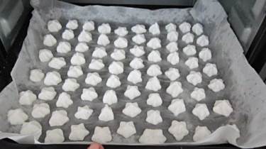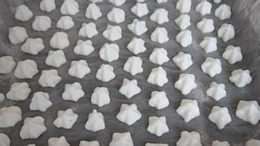 蛋白糖与棉花糖相似入口即化有浓浓的奶香味,不同的是它也很脆,非常适合1岁左右的宝宝当小零食。它的制作只需蛋白、糖、奶粉、和少许玉米淀粉只是烘烤时间要久一些,我用了两个蛋白就能做出好多蛋白糖。