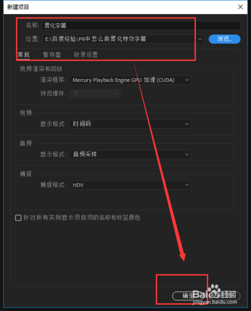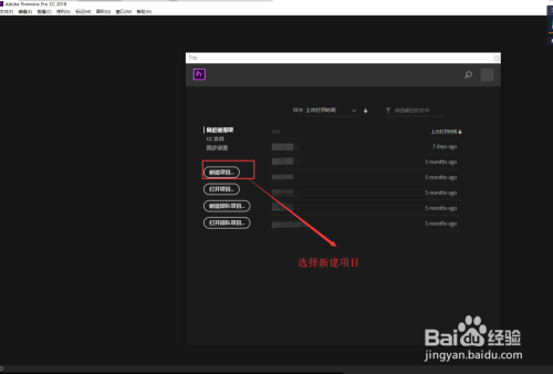 启动打开PR视频剪辑软件,选择新建项目,打开新建项目选项设置窗口,给当前这个视频剪辑PR项目命一个名字,并选择一个电脑位置进行保存,其他设置可以保持默认,然后点击确定进行创建。