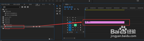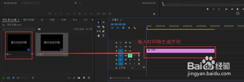 关闭退出字幕编辑窗口,在项目管理窗口中选择这个字幕,将其拖入到时间轴窗口中单击鼠标左键,根据这个字幕来创建一个剪辑序列。