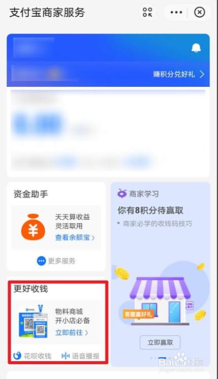 进入商家服务后,选择更好收钱,进入物料商城。