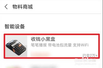 商家扫码收款机器怎么申请的步骤:点击物料商城、点击收钱小黑盒、点击购买即可。