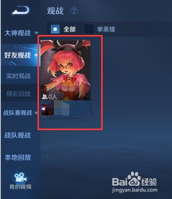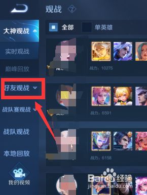 进入到好友观战页,在右边列表中,选择好友,然后点确定