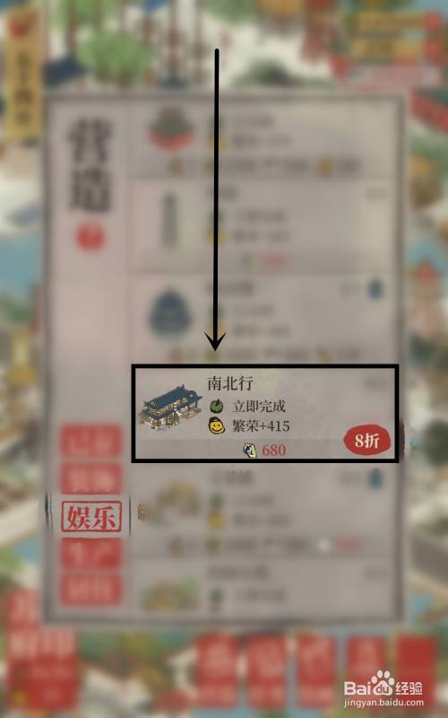 在娱乐建筑页面找到【南北行】,点击【南北行】建筑即可进行建造。