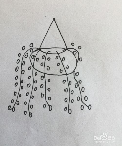 从花盆往下画线条,作为吊兰的枝八斤条。