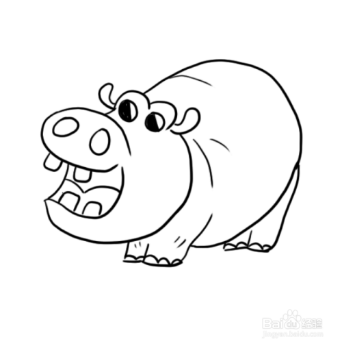接着画上大河马大大的鼻子和圆圆的鼻孔