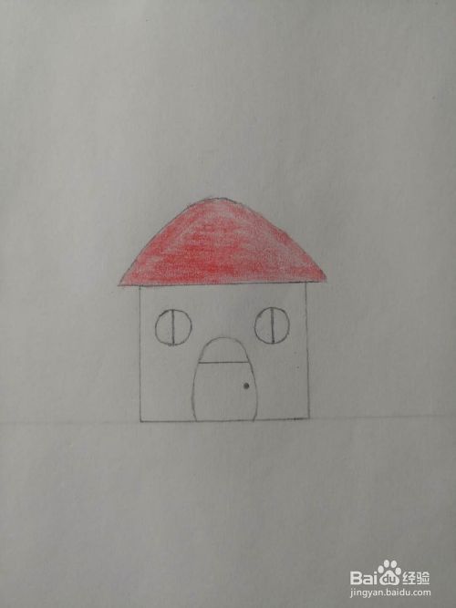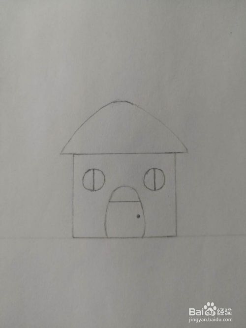 再给小房子画出房门,如下图所示,线条也很简单。