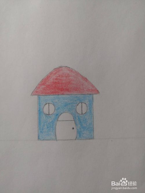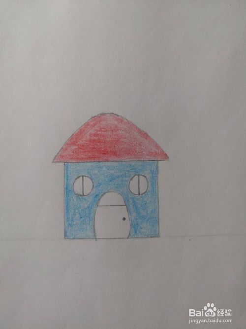 最后给小房子前面的墙体涂上蓝色,这样小房子的简笔画就完成了。