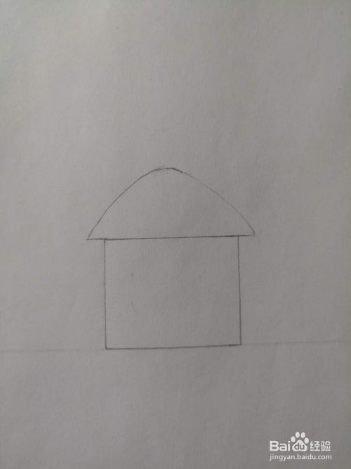 然后勾勒出小房子的房顶,线条很简单,如下图所示。