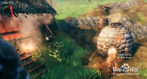 走到木炭窑的旁边后,我们按下E键给木炭窑添加木材