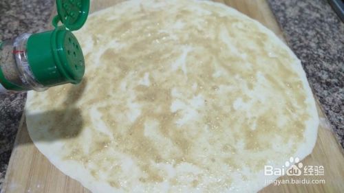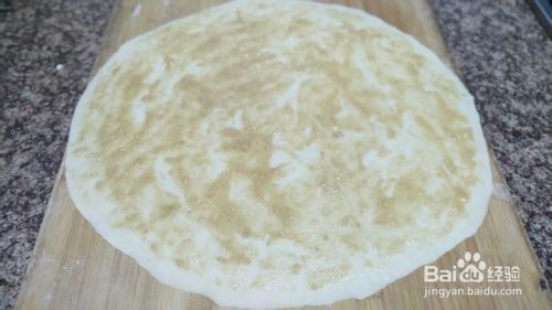之后将粘稠状芝麻酱均匀地抹在薄饼上。