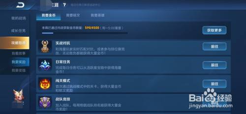 第二个方法就是,点击游戏首页的右下角,在攻略指南中选择“我要奖励”里面就会有很多种方式获取金币。
