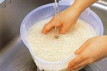 取大米淘洗干净后,于器皿内,