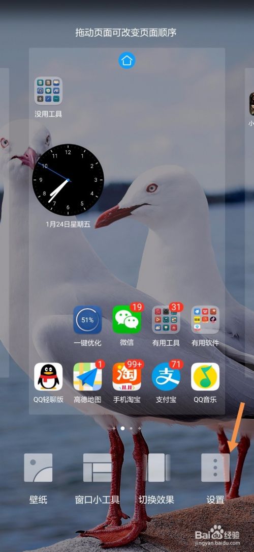 首先,在主界面空白处长按,呼出设置界面,如图中所示。