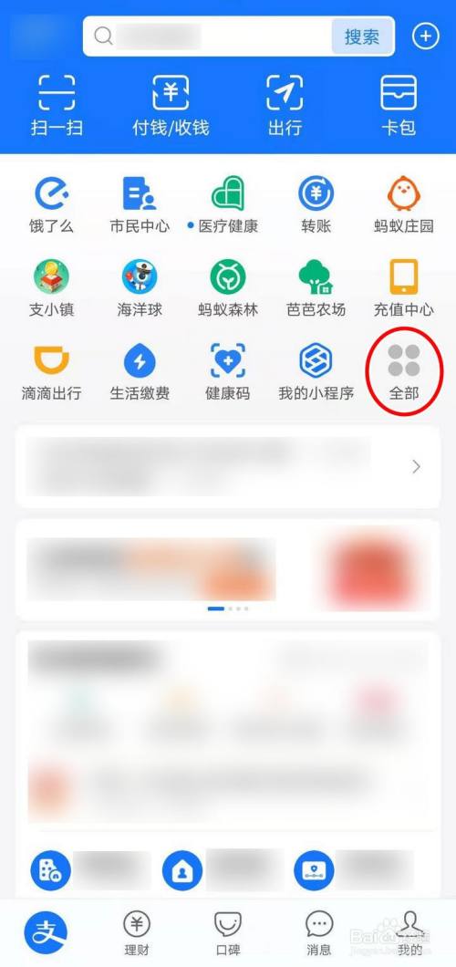 打开支付宝APP首页,千人千面,选择应用中的全部;